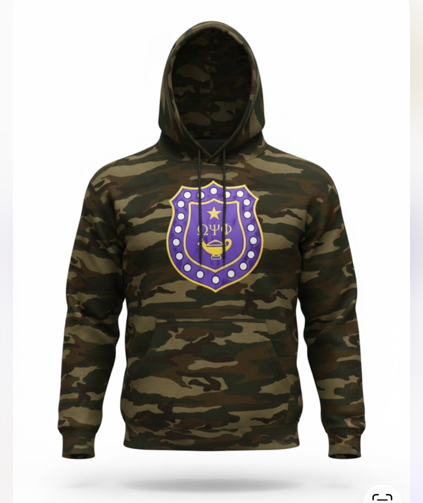 Omega Psi Phi Camouflage Embroidered Hoodie